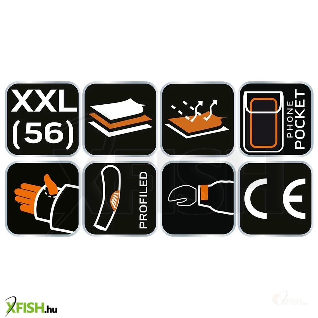 A polár belső réteg melegen tart, ami különösen előnyös hűvős időben vagy korai reggeli horgászatra induláskor. Praktikusságát a beépített telefonzseb is fokozza, amelyben biztonságosan tárolhatóak a személyes tárgyak; ez különösen hasznos, ha a horgászat közben a mobiltelefon elérhető közelségben kell, hogy legyen. A kabát CE tanúsítvánnyal rendelkezik, ami garantálja, hogy a termék megfelel az európai minőségi és biztonsági szabványoknak, növelve ezzel a viselő bizalmát a termék megbízhatóságában.