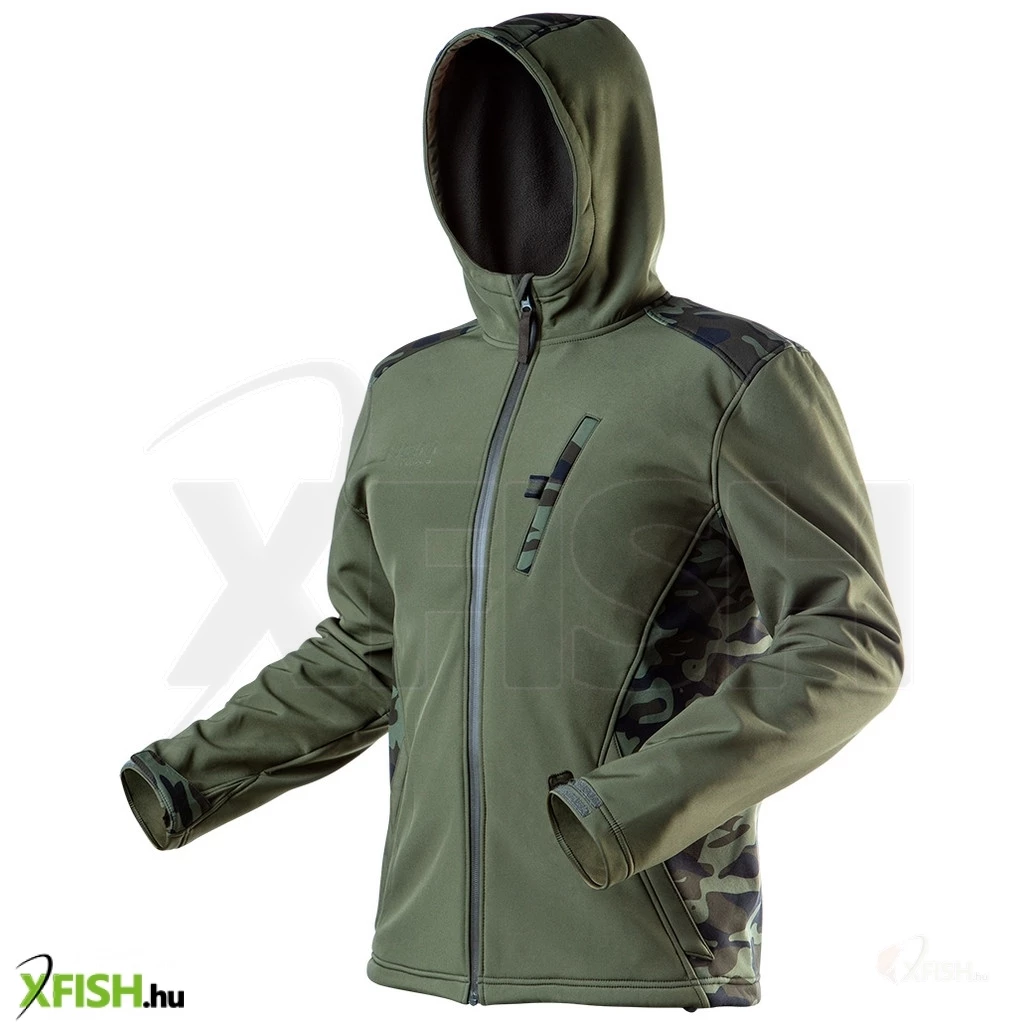 Neotools terepmintás softshell munkavédelmi kabát, víz- és szélálló, kapucni, camo, vízáll5000mm, légáter3000g/m2/24h, XXL