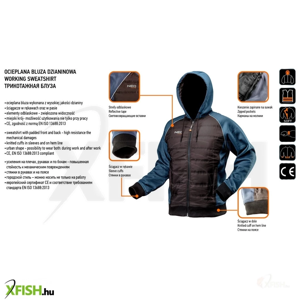 A Neotools munkavédelmi kabát, tervezésénél fogva, a legmagasabb szintű védelmet és kényelmet biztosítja az outdoor munkavégzés során. Az extrán szigetelt, bélelt dzseki kiváló választás a hideg időjárási körülmények között való munkavégzéshez, hiszen megbízhatóan tartja a hőt, miközben a poliészter bélés kiváló szigetelést nyújt, így bármilyen körülmények között szárazon és melegen tart. A kabát praktikus kialakítása révén a cipzáros zsebek elegendő tárolóhelyet kínálnak a kisebb eszközök számára, így mindent könnyen elérhet.