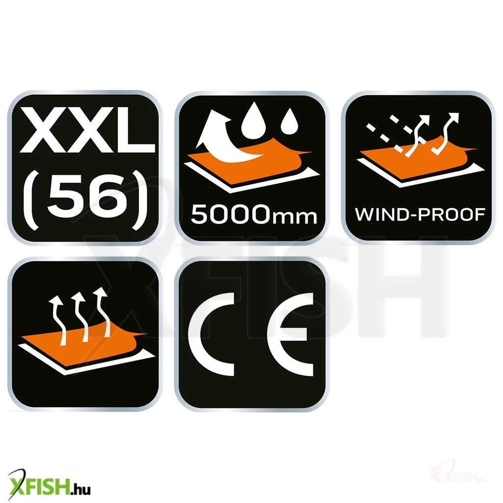 - Kivitel: Légáteresztő, gumis derék, vízálló cipzár, lábszár végén összehúzók