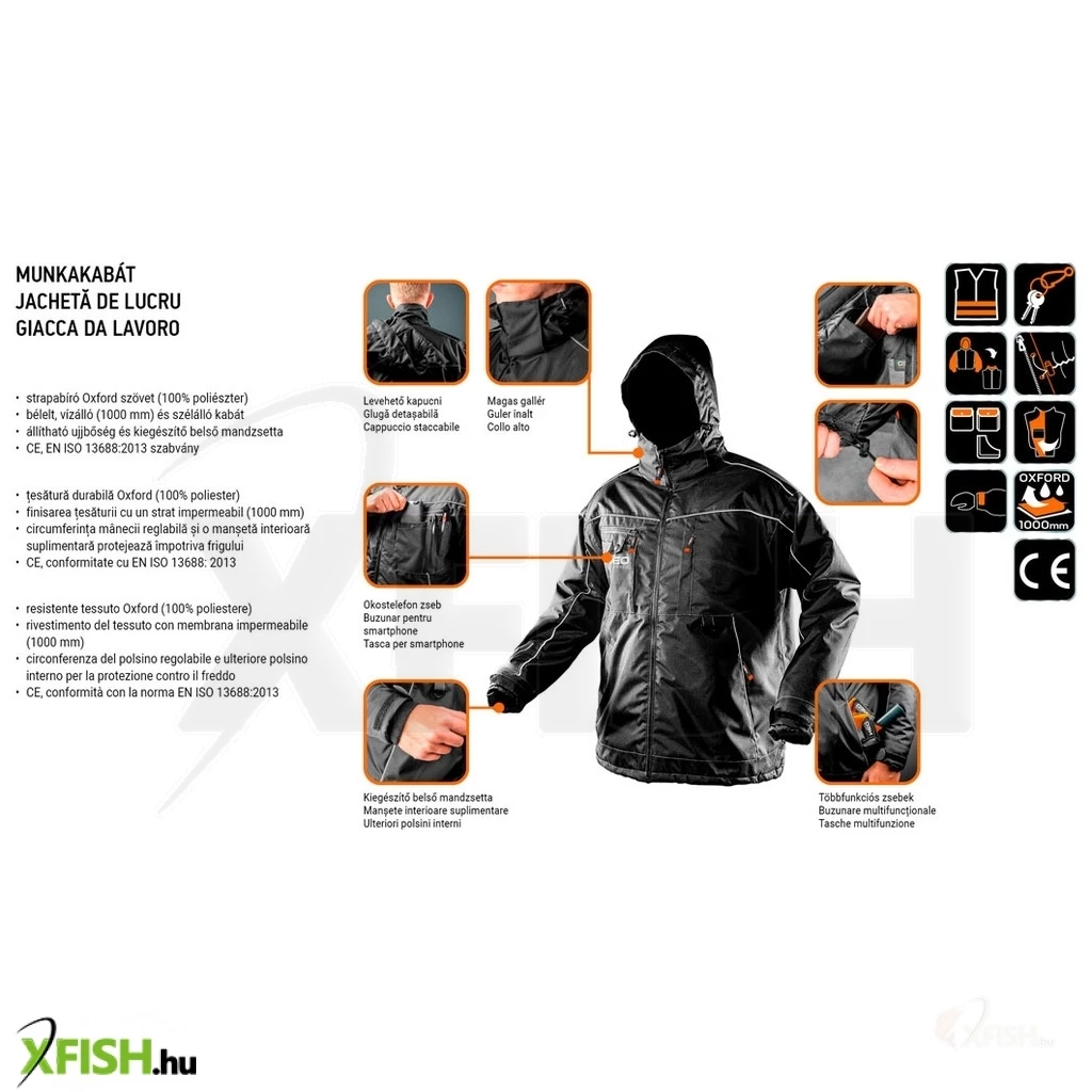 A Neotools munkakabát CE tanúsítvánnyal rendelkezik, amely biztosítékot nyújt a minőség és a nemzetközi szabványoknak való megfelelés tekintetében. Ez a kabát tehát nem csupán a kellemes viseletet, hanem a maximális védelmet is biztosítja a kihívást jelentő környezetben dolgozók számára.