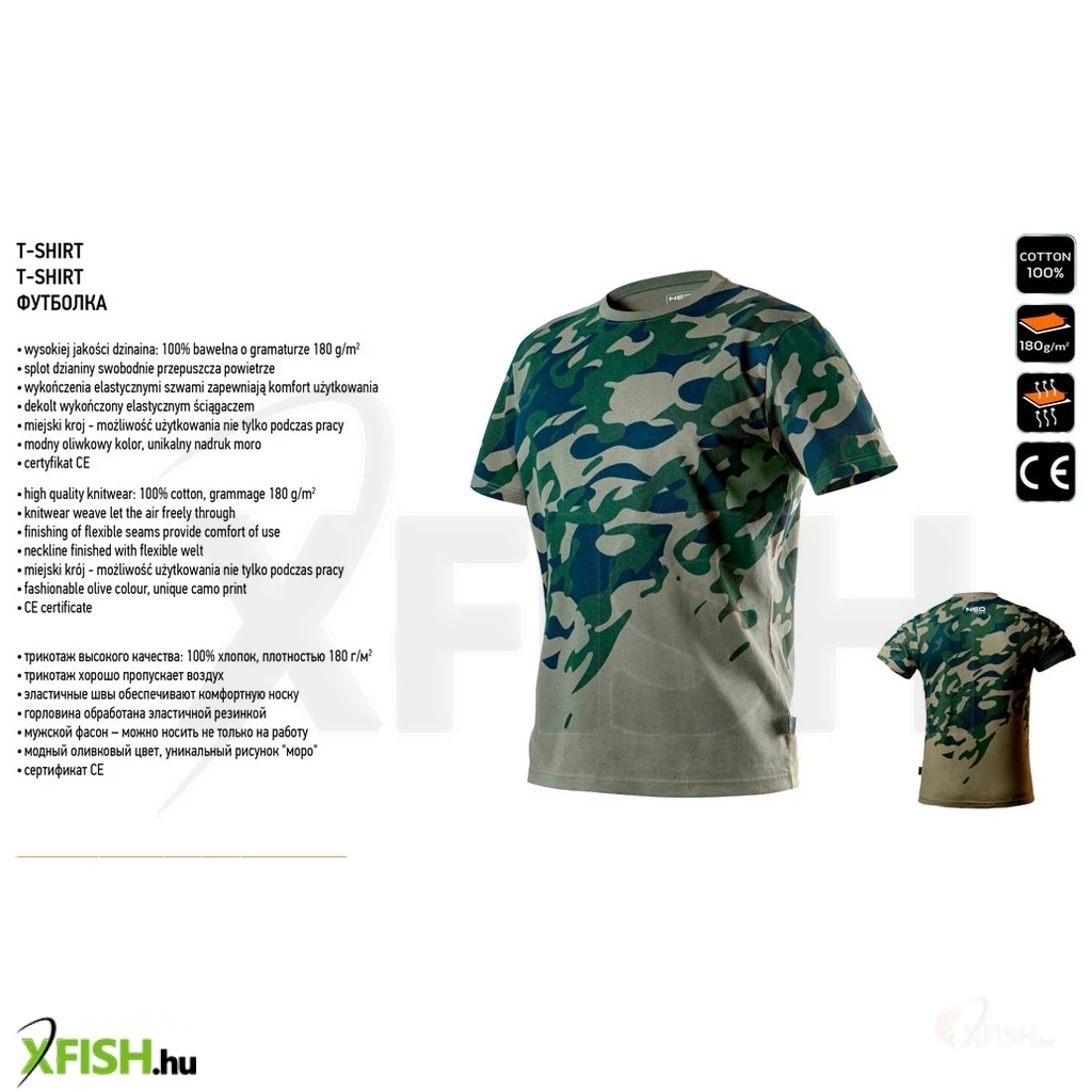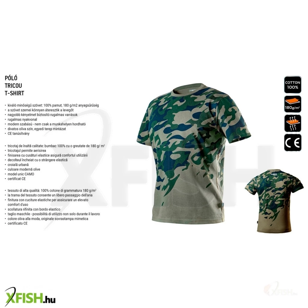 KategóriákKategóriákMunkavédelmi ruházat Munkavédelmi Póló Neotools munkavédelmi póló, camo, terepmintás, olíva, 100% pamut, 180g/m2, L