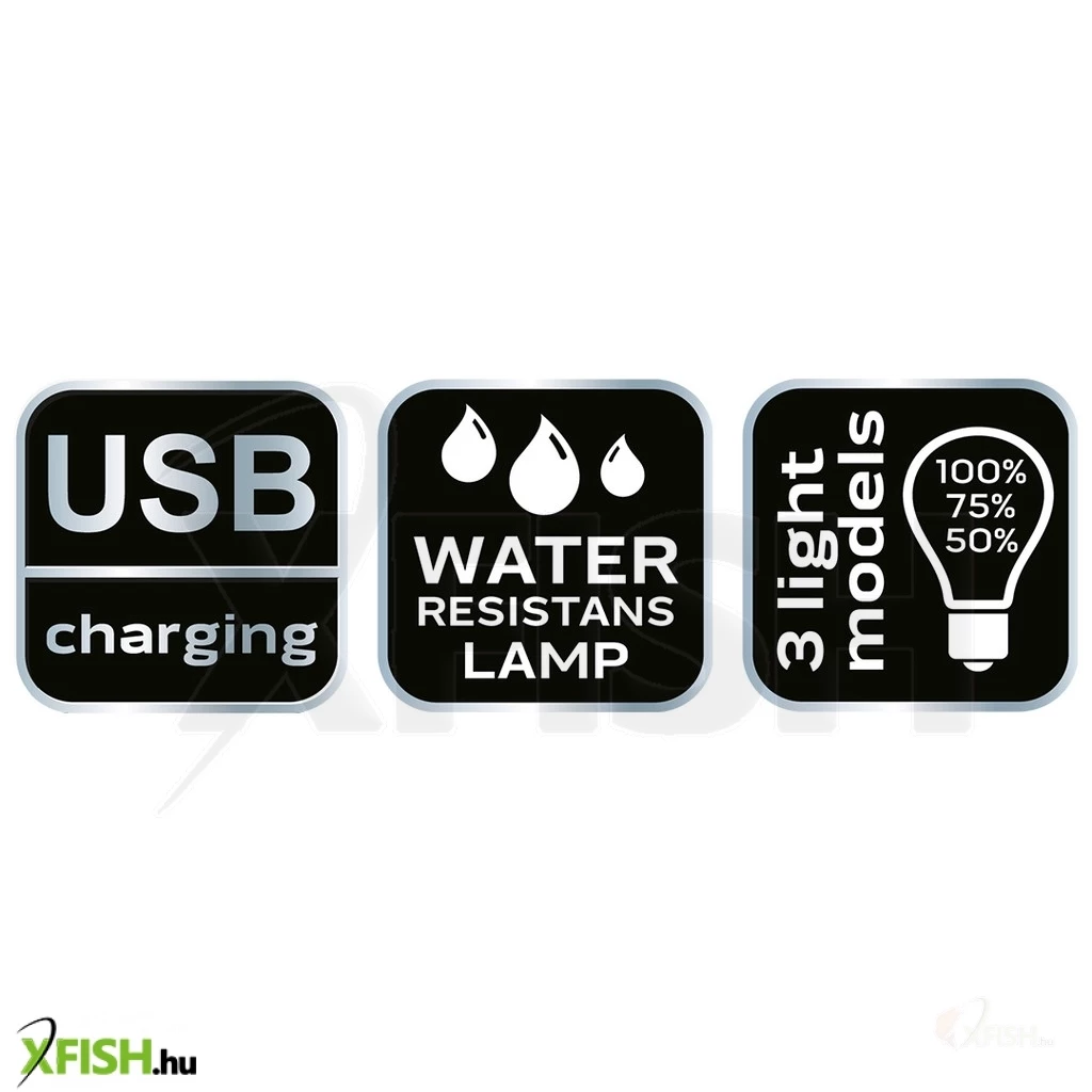 A LED világítás három állítható fényerő szinttel rendelkezik, melyek 100%-os, 75%-os, illetve 50%-os intenzitást nyújtanak. Így mindig kiválaszthatja a pillanatnyi körülményeknek leginkább megfelelő fényerőt, legyen szó a halak mozgolódásának megfigyeléséről vagy az apró horgászkellékek precíz kezeléséről. Az energiaellátás sem jelent problémát, hiszen a lámpa USB-aljzaton keresztül tölthető, biztosítva a hosszú élettartamot és kényelmes használatot.