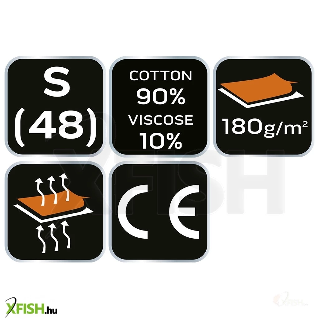A póló anyagösszetétele 90% pamut és 10% viszkóz, mely kiváló puhaságot és kivételes kényelmet biztosít az egész napos viselés során. A 180 g/m2 súlyú anyag ráadásul megfelelő tartást és tartósságot ad a ruhadarabnak, miközben a bőrbarát pamut anyag biztosítja a megfelelő légáteresztést, hogy a viselése minden körülmények között komfortos maradjon.