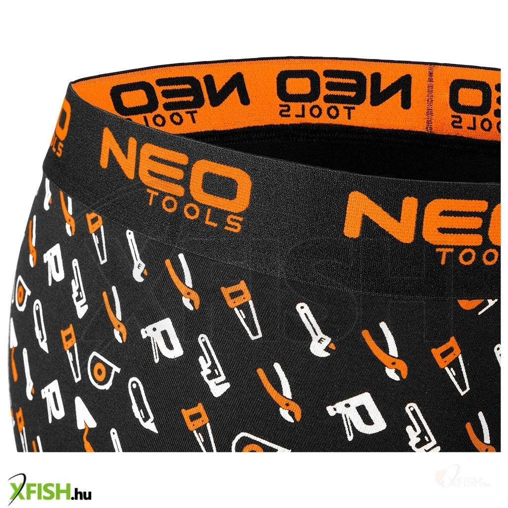 A NEO TOOLS Basic boxeralsó szett tökéletes választás mindennapi viseléshez. Ez a három darabos csomag három különböző, de egyaránt stílusos boxeralsót tartalmaz, melyek közül az egyik sima fekete, a másik fekete alapon foltos nyomtatással a lábszáron, a harmadik pedig fekete alapon fekete, fehér és narancssárga szerszámmintával díszített. A kiváló minőségű, kényelmes viseletet nyújtó boxeralsók 95% pamutból és 5% elasztánból készültek, 180 g/m2-es szövetsűrűséggel, ami biztosítja a tartósságot és a puha tapintást.