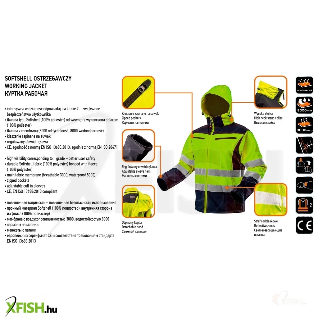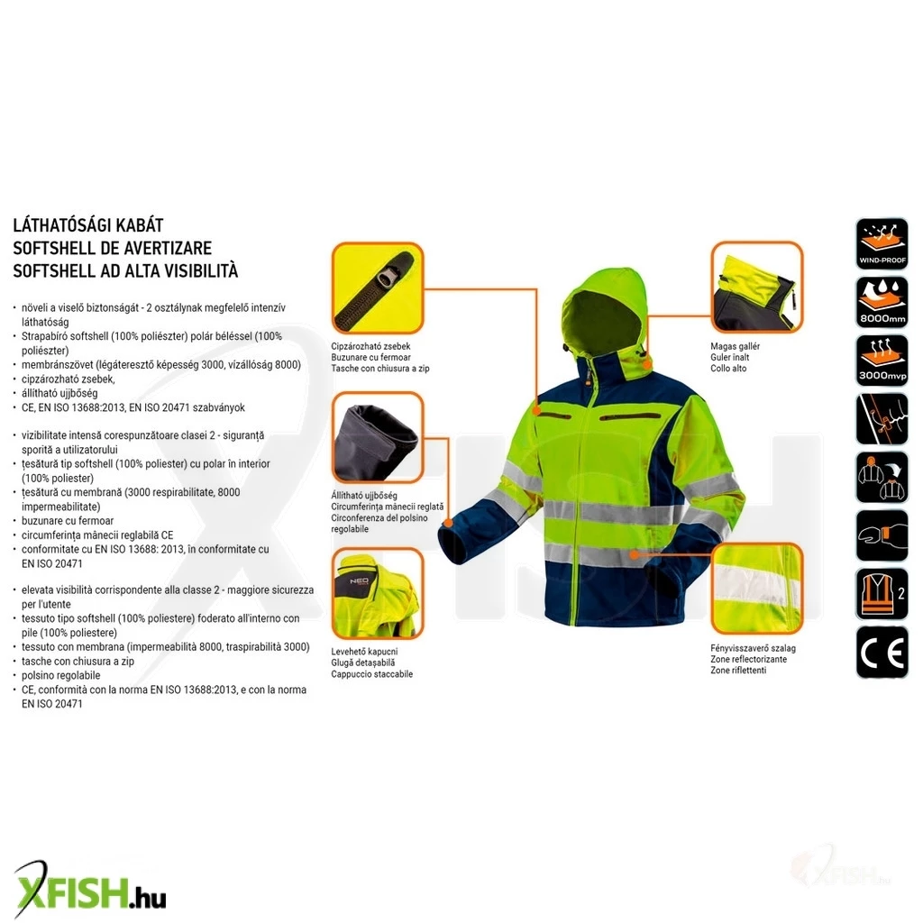 A Neotools láthatósági softshell munkavédelmi kabát mindenki számára ideális választás, aki értékeli a komfortot és a biztonságot munkája során. Ez a termék tökéletesen ötvözi a praktikusságot és a stílust, így bármilyen környezetben megállja a helyét. A kabát sárga színe és láthatósági elemei az EN ISO 20471 szabvány szerinti 2. osztályú láthatóságot biztosítanak, így garantálva a viselő biztonságát még rossz látási viszonyok között is.