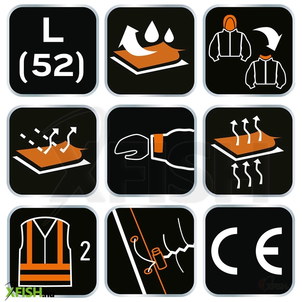 Praktikus kialakítása révén négy cipzározható zseb és egy külső tépőzáras zseb áll rendelkezésre, amelyek kényelmes tárolást biztosítanak a munkához szükséges eszközök számára. Az ujjak tépőzáras összehúzóval vannak felszerelve, amely lehetővé teszi a kabát pontos illeszkedését, a derékrész pedig szabályozható összehúzóval rendelkezik a még jobb személyre szabott kényelem érdekében. A kapucni szükség szerint levehető, összehúzóval állítható, így bármilyen időjárási viszonyokhoz könnyen alkalmazkodhat.