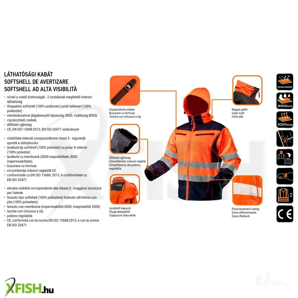 A Neotools láthatósági softshell munkavédelmi kabát kapucnival a védőfelszerelések kategóriájában különleges és megbízható választás azoknak, akik biztonságban szeretnék tudni magukat, miközben kényelmet és funkcionalitást keresnek. Ez az élénk narancssárga softshell kabát kiemelkedő láthatóságot biztosít, hiszen megfelel az EN ISO 20471 szabvány 2. osztályának, így még alacsony fényviszonyok között is könnyen észlelhető. A kabát prémium anyagokból készült, 8000 mm-es vízállósággal rendelkezik, így bátran viselhető esős időben is, emellett 3000 g/m2/24h légáteresztő képessége gondoskodik a megfelelő szellőzésről, így komfortos még egész napos viselés esetén is.