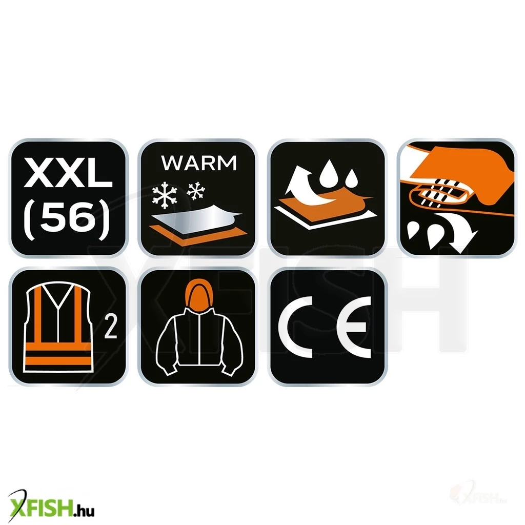 Mindezek mellett a kabát CE minősítéssel is rendelkezik az EN ISO 13688:2017 szabvány szerint, ami garantálja a minőségi és biztonsági előírásoknak való megfelelést. Ez a munkavédelmi kabát kiváló választás mindazok számára, akik egyszerre szeretnék élvezni a magas szintű láthatóságot, a csúcskategóriás védelmet és a tökéletes komfortot.