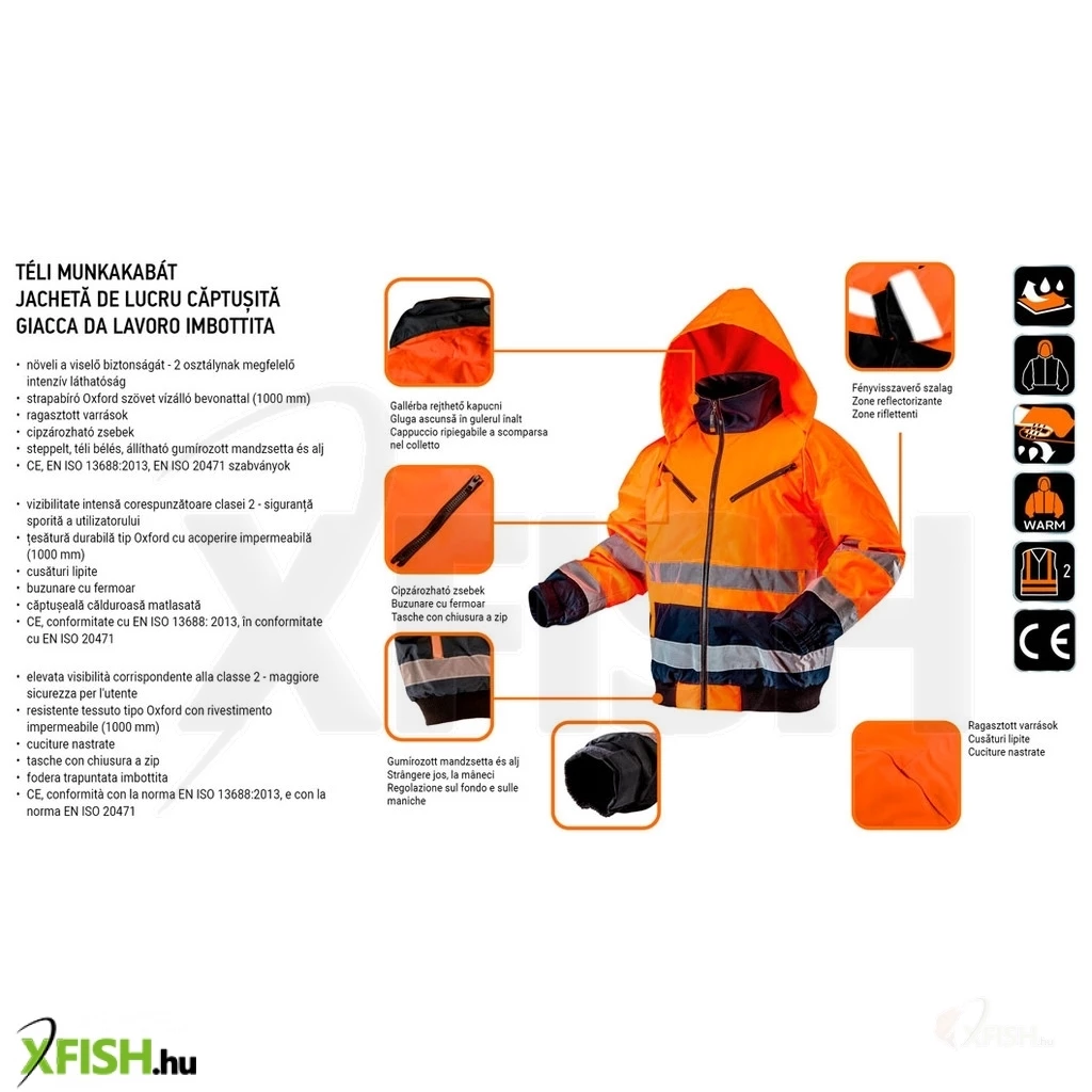 A Neotools láthatósági munkavédelmi kabát ideális választás azok számára, akik kiemelkedő védelmet és kényelmet keresnek munkavégzés közben. Ez az extrán szigetelt kabát narancssárga színben készült, mely segíti viselőjét abban, hogy minden körülmények között jól látható legyen. Az EN ISO 20471 szabvány szerinti 2. osztályú láthatósággal rendelkezik, így a biztonság garantált mind beltéri, mind kültéri munkakörnyezetekben.