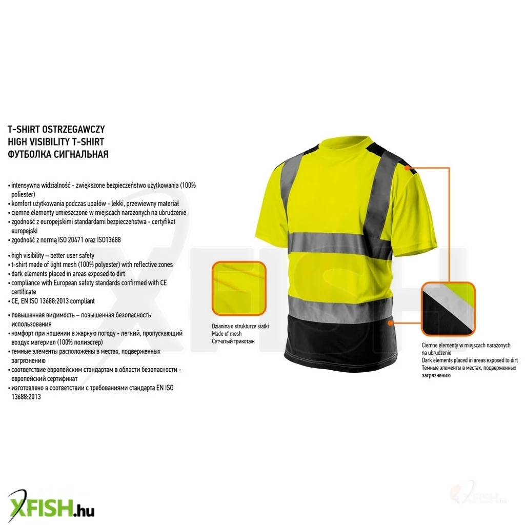 A Neotools láthatósági munkavédelmi póló ideális választás mindazok számára, akik kiemelkedő láthatóságot és kényelmet keresnek a munkavégzés során. Ez a sárga, XL méretű póló speciálisan a horgászok és más kültéri munkát végzők számára készült, akiknek a biztonság az elsődleges szempont. A póló viselése során a figyelemfelkeltő sárga színének és a sötét alsó részének köszönhetően a láthatóság garantált, még rossz fényviszonyok között is. A póló megfelel az EN ISO 20471 szabvány 2 osztályának, amely biztosítja az intenzív láthatóságot.