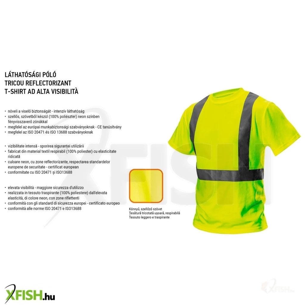 A Neotools láthatósági munkavédelmi póló ideális választás mindazok számára, akiknek a munka során elengedhetetlen a biztonság és a kényelem. Ez a sárga színű munkapóló kiválóan ötvözi a funkcionalitást a hatékony láthatósággal, így a legjobbat nyújtja a munkahelyi védőfelszerelések közül. Az EN ISO 20471 szabvány szerinti 2 osztályba tartozik, amely garantálja az intenzív és megbízható láthatóságot, bármilyen munkakörnyezetben is legyen szükség rá.
