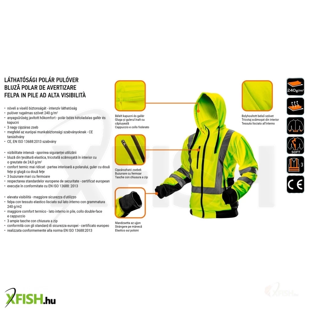 A Neotools láthatósági munkavédelmi kabát citromsárga színével és stílusos kialakításával tökéletes védelmet nyújt a munkahelyi biztonság érdekében. Az EN ISO 20471 szabvány szerinti 3. osztályba sorolt kabát kiemelkedő láthatóságot biztosít, amely elengedhetetlen az ön biztonságához különböző munkakörnyezetekben. A 100% poliészter anyagból készült darab 240 g/m2-es szövésű, amely nemcsak tartós, hanem kényelmes viseletet is biztosít egész nap.