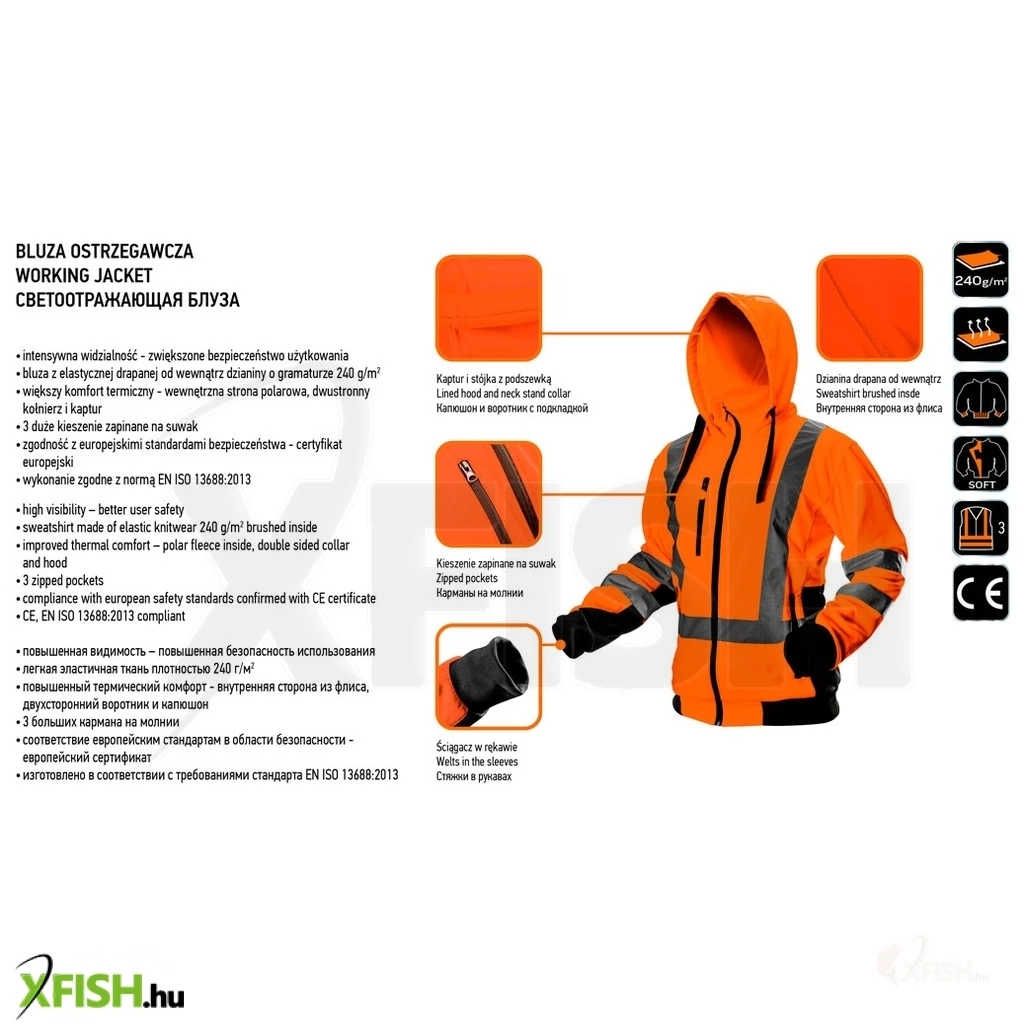 Neotools láthatósági munkavédelmi kabát, narancssárga, kapucnival, L