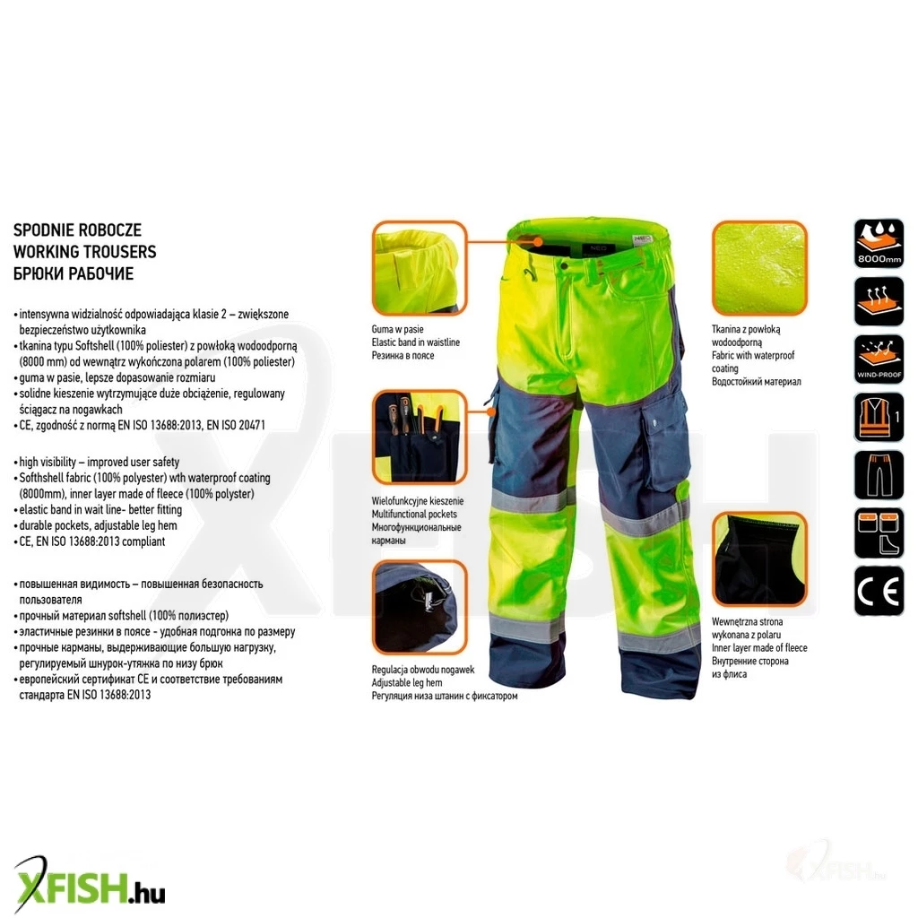 A Neotools láthatósági softshell munkásnadrág a modern munkavégzés egyik legfontosabb kiegészítője, amely ötvözi a funkcionalitást és a biztonságot. Az élénk citromsárga színével és a legmagasabb, 1. osztályú láthatósági besorolással büszkélkedhet az EN ISO 20471 szabvány szerint. Ez a munkanadrág különösen ideális mindazok számára, akik olyan környezetben dolgoznak, ahol elengedhetetlen a kiemelkedő láthatóság, legyen szó akár éjszakai munkáról, forgalmas területeken végzett tevékenységekről, vagy rossz látási viszonyok melletti munkavégzésről.