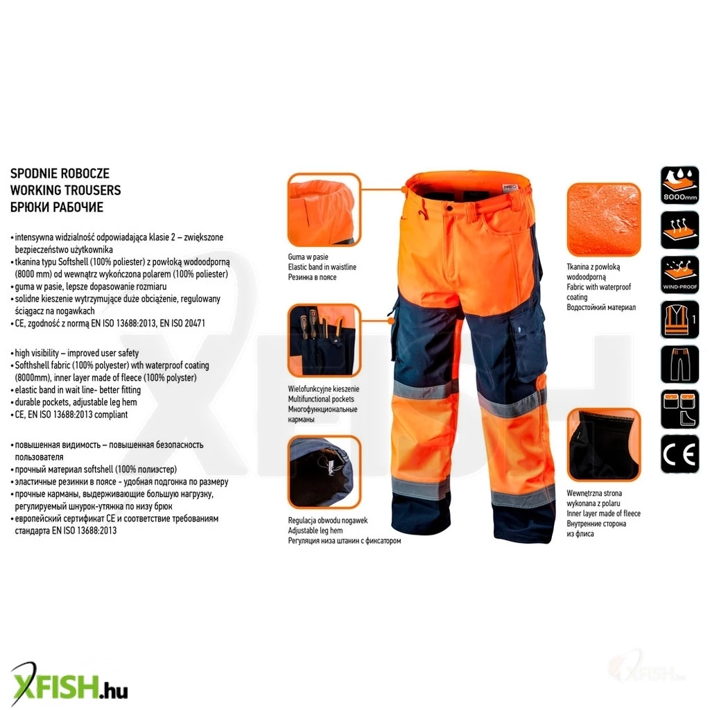 A Neotools láthatósági munkanadrág tökéletes választás mindazok számára, akik extrém körülmények között dolgoznak, és a biztonság mellett a kényelemről sem szeretnének lemondani. Ez az XXXL méretű softshell anyagból készült munkanadrág kifejezetten a magas láthatósági követelményekhez van tervezve, így megfelel az EN ISO 20471 szabvány 1. osztályának. Ezt a szabványt szem előtt tartva a narancssárga szín és a speciális fényvisszaverő elemek biztosítják, hogy bármilyen körülmények között jól látható legyen viselője.