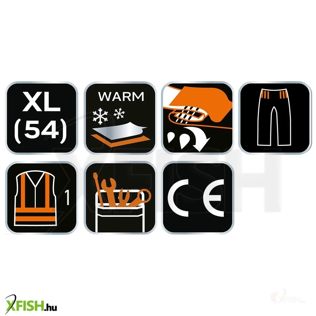 Többfunkciós zsebei rengeteg tárolási lehetőséget biztosítanak, így a szerszámok és egyéb fontos eszközök mindig kéznél lehetnek. A szerszámtartó tovább növeli a munkavégzés hatékonyságát, míg a gumírozott derékpánt rugalmas illeszkedést és mozgásszabadságot biztosít. Ragasztott varrása védelmet nyújt az eső ellen, köszönhetően a vízlepergető és szélálló tulajdonságoknak, így a nehéz időjárási viszonyok között is kiválóan megállja a helyét.