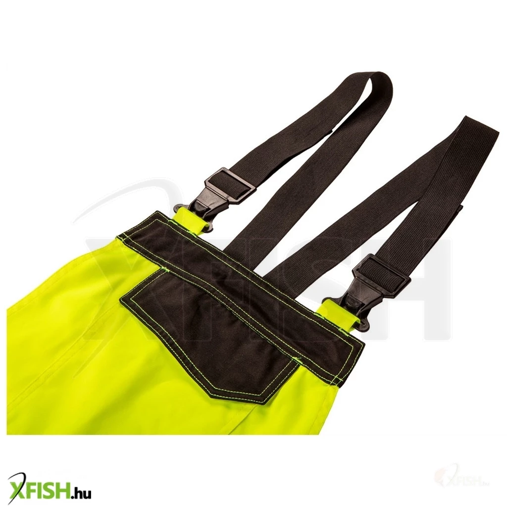 A kantáros kialakítás kényelmes viseletet és megfelelő illeszkedést biztosít, így a nadrág nem csak kényelmes, de praktikus is a mindennapi használatra. Intenzív citromsárga színe és az EN ISO 20471 szabvány szerinti 2. osztályú láthatósági képessége garantálja, hogy mindig fókuszban maradhat, miközben a munkahelyén tevékenykedik. Az anyag összetétele egy 100% PU bevonatú Oxford poliészter, amely ellenálló a víz ellen, és ragasztással erősített varratokkal készült, így növelve a tartósságot és a hosszú élettartamot.