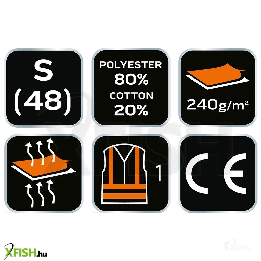- Szabványok: EN ISO 20471, EN ISO 13688:2024