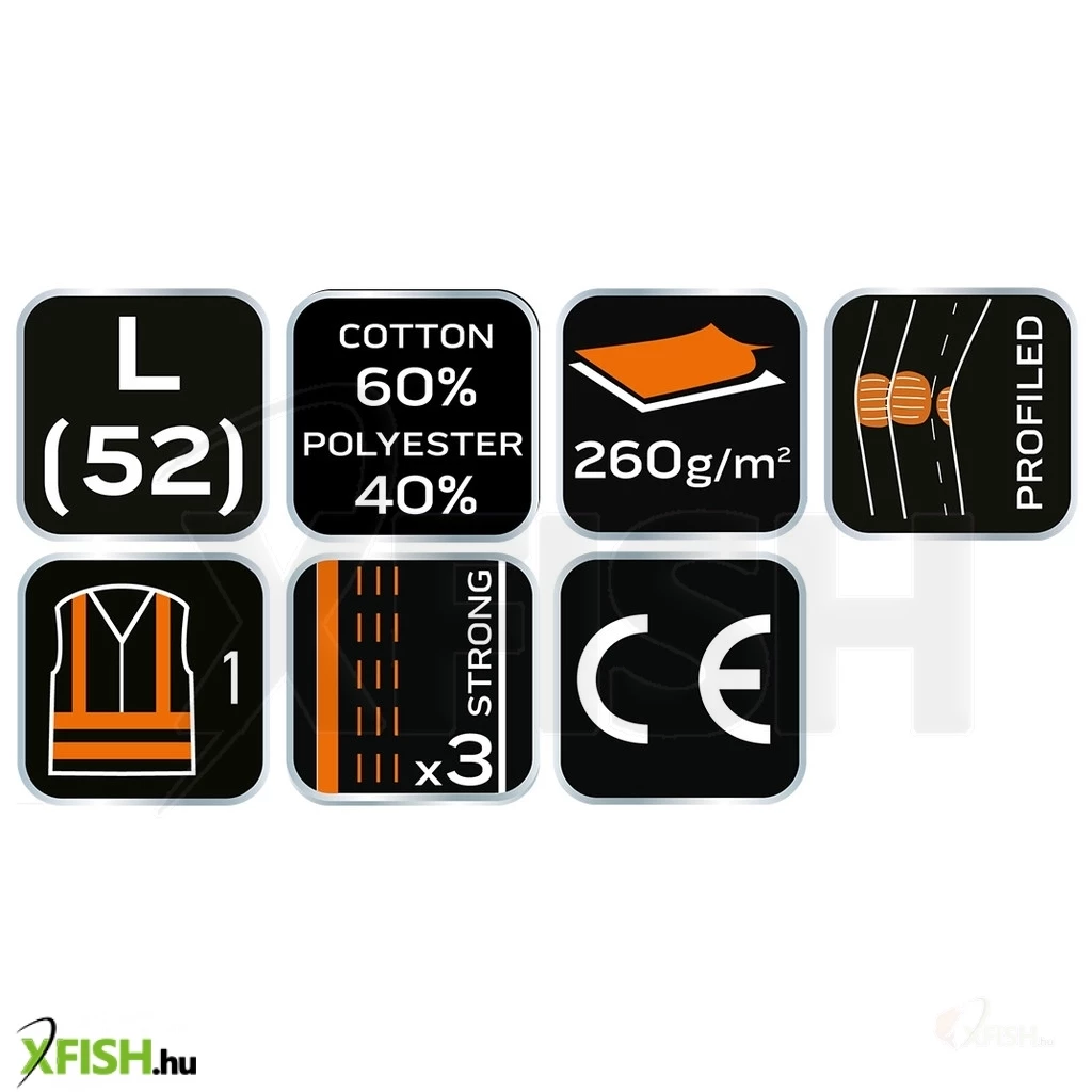 A Neotools láthatósági munkanadrág egy kiváló választás mind a professzionális, mind a hobbi céllal végzett kültéri munkákhoz, mivel a legfontosabb szempontokat, a kényelmet és a biztonságot szem előtt tartva tervezték. Ez a munkanadrág 60% pamut és 40% poliészter keverékéből készül, így annak tartóssága és komfortérzete is garantált, az anyag gramm súlya pedig 260 g/m2. Intenzív citromsárga színével és felvarrt fényvisszaverő csíkjaival az EN ISO 20471:2013 szabvány szerinti 1-es láthatósági osztálynak felel meg, ami különösen fontos azok számára, akik munkájuk során a közutakon vagy más veszélyes területeken tevékenykednek.