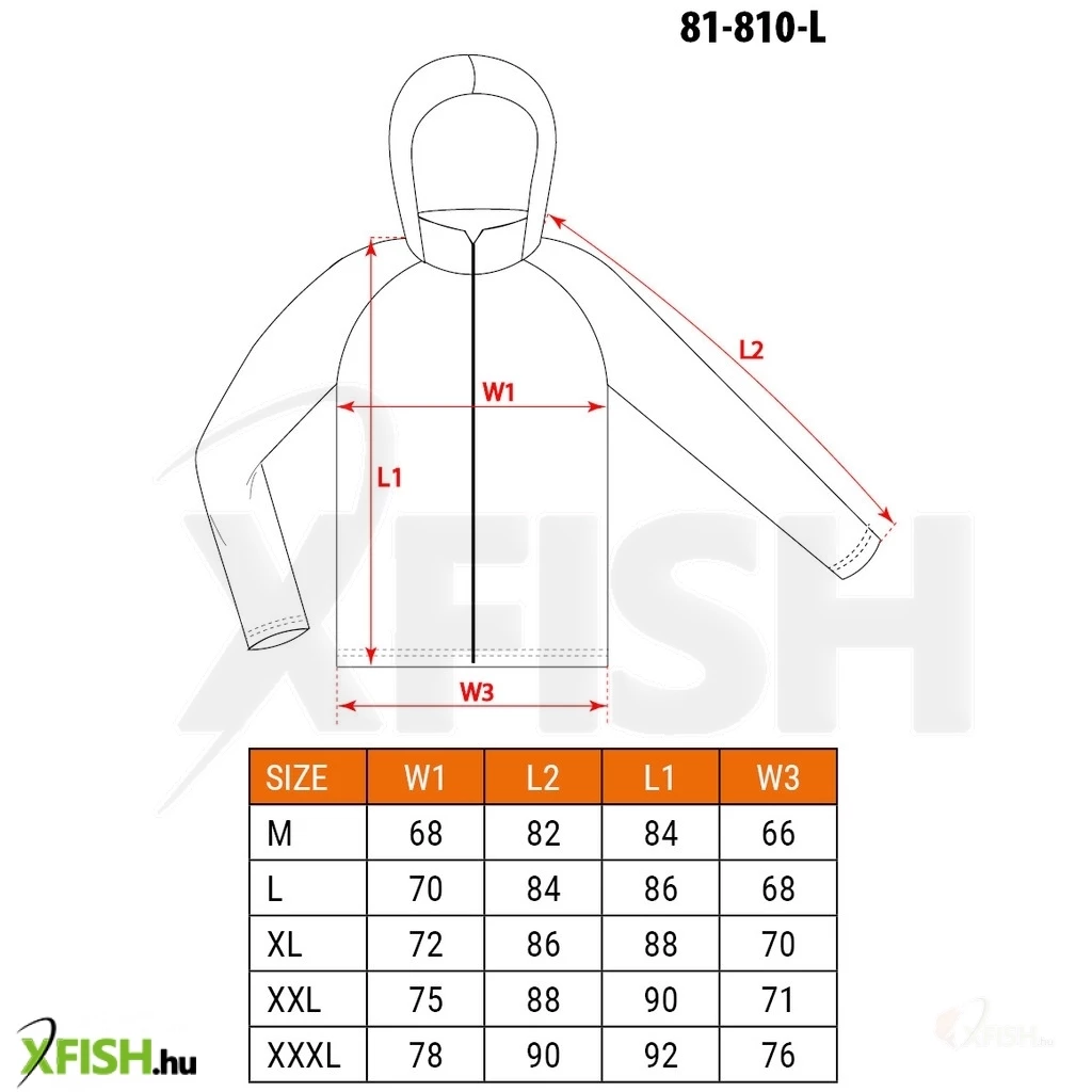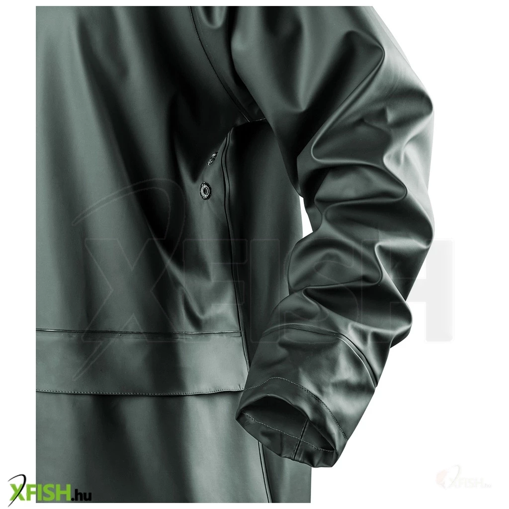 A termék további kiemelkedő tulajdonságai közé tartozik az állítható fejméretű kapucni és a belső mandzsetta, amelyek személyre szabott viseletet nyújtanak, valamint a betét, amelyre a tulajdonos neve írható. Az esőkabát anyaga rendkívül tartós és strapabíró, a PU-PVC alapanyag és a poliészter bélés 310 g/m² súlyával garantálja a hosszú élettartamot és a megbízhatóságot. A termék minden varrata leragasztott, így fokozott védelmet biztosít a víz ellen, míg a fő cipzárt szintén plisszé védi.