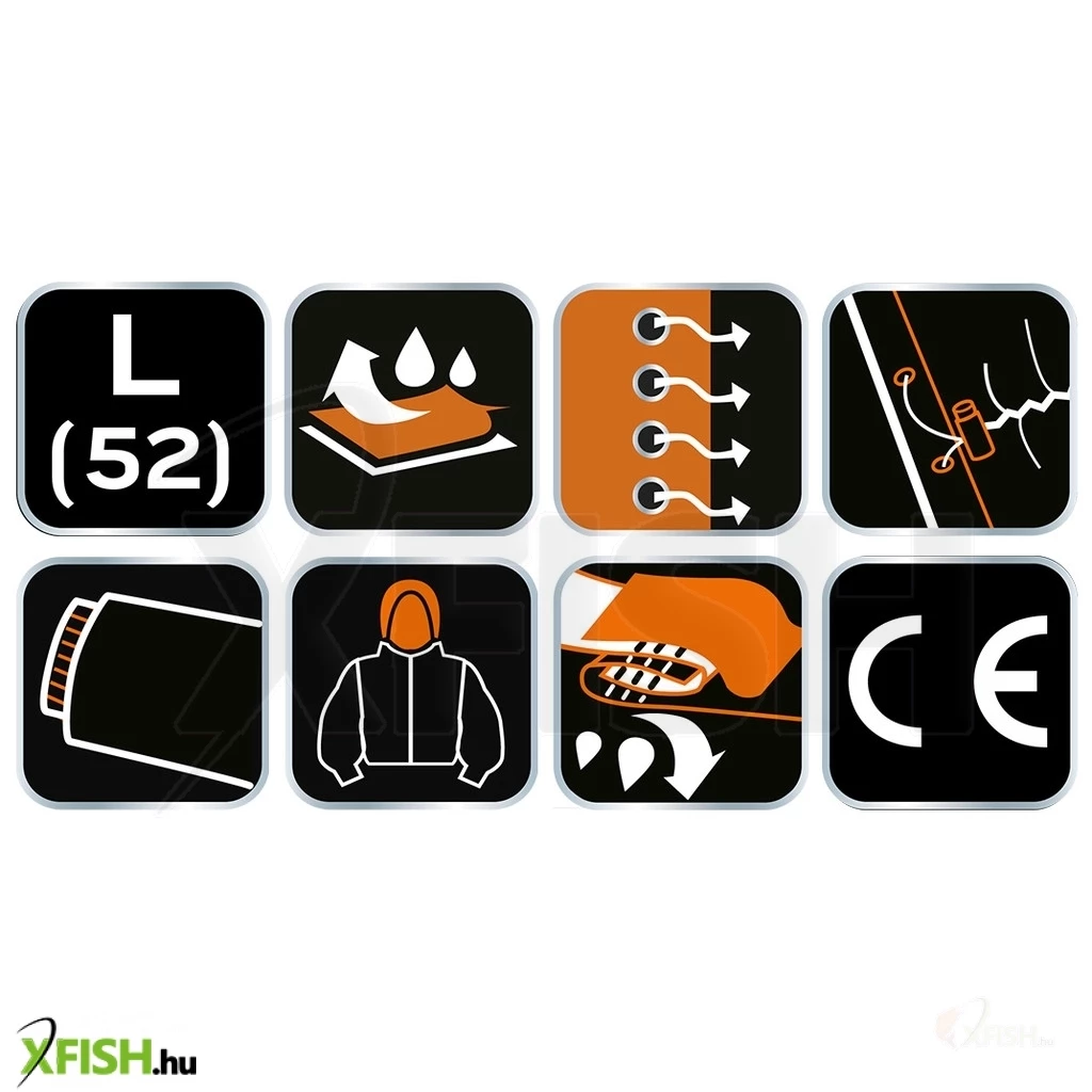 Az esőkabát számos praktikus funkcióval rendelkezik, amelyek a viselés során nyújtanak extra kényelmet és védelmet. A gallérba rejthető kapucni kihúzható, átlátszó ellenzővel van felszerelve, amely megóvja a szemet az esőtől, miközben a kilátást is tisztán tartja. A plisszével takart zsebek védelmet nyújtanak a zsebekben tárolt értéktárgyaknak, így nem kell aggódnia az elázás miatt. A hónaljban található szellőzőnyílások biztosítják a megfelelő szellőzést, így a dzseki viselése hosszabb távon is komfortos marad.