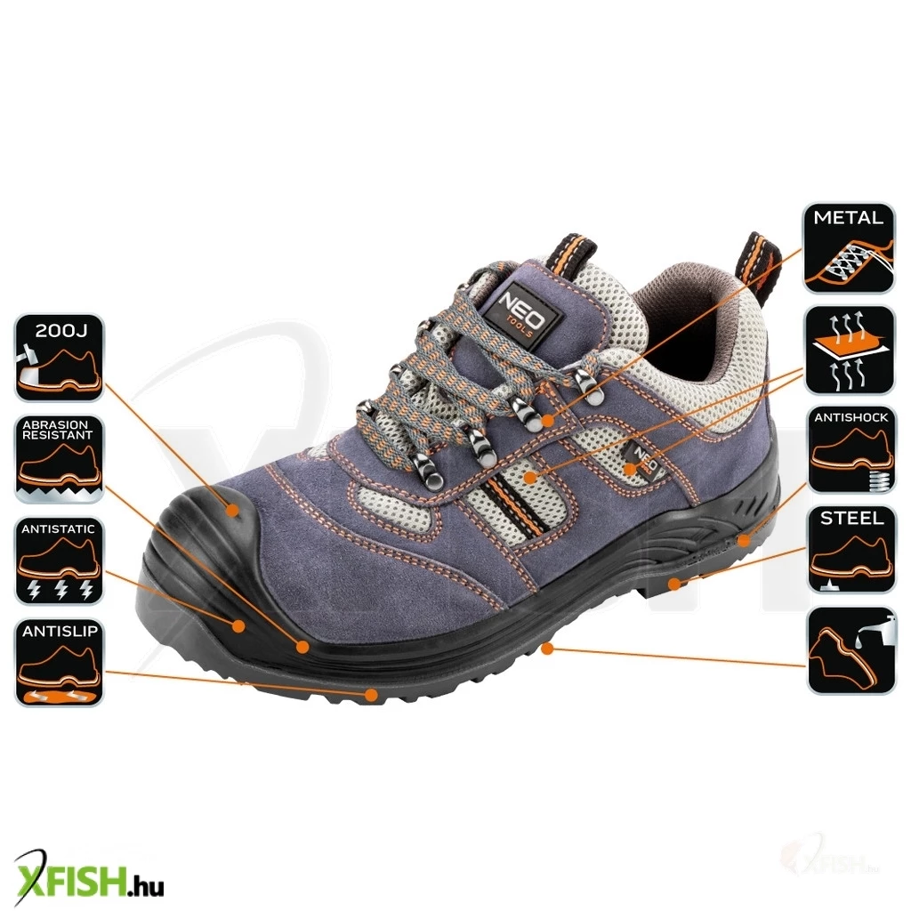 Üdvözlöm a horgászati webáruházunkban, ahol az igényes felszerelés mellett a biztonságra is nagy hangsúlyt fektetünk. Bemutatjuk a Neotools munkavédelmi cipőt, amely velúrbőrből készült, és a legmagasabb elvárásoknak is megfelel. Ez a munkavédelmi félcipő nem csupán a munka során nyújt kiváló védelmet, hanem a horgászat során is komfortot biztosít. A cipő hasított bőrből készült, amely strapabíró és ellenáll a különféle fizikai hatásoknak. A csúszásmentes talp a rezgéselnyelő rendszerrel párosítva kényelmes és biztonságos lépést biztosít bármilyen felületen. Az acél orrmerevítő a maximális 200 J energiájú ütésnek is ellenáll, míg az acél betét az átszúrás ellen véd, biztosítva ezzel a láb maximális védelmét. A cipő további jellemzője a dörzs-, olaj-, benzin- és szerves oldószerálló talp, amely megbízható partnere lesz minden terepen. Az antisztatikus betét és a fémből készült fűzőkarika növelik a cipő funkcionalitását. A lélegző felsőrész kényelmes viseletet biztosít hosszú órákon át, ezzel is hozzájárulva a használó elégedettségéhez. A cipő megfelel az S1P SRC kategóriának, amely a kiváló tapadást jelenti lauril-nátrium-szulfát eleggyel bevont kerámikus és glicerollal bevont acél talajon, így garantálva a legnagyobb biztonságot. A termék CE tanúsítvánnyal rendelkezik, amely igazolja a nemzetközi szabványoknak való megfelelést.