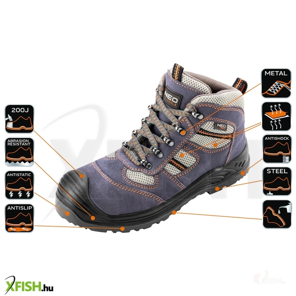 Neotools munkavédelmi bakancs, velúrbőr 44, ce, s1p sra