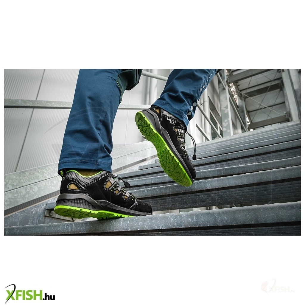 A NEO TOOLS munkavédelmi szandál ideális választás azok számára, akik igényes munkakörülmények között dolgoznak, és fontos számukra a magas szintű védelem és kényelem. A szandál kiváló minőségű velúrbőrből és textil anyagból készült, amely hosszú távú tartósságot és viselési kényelmet garantál. Az innovatív kötött hálós bélés és a légáteresztő felsőrész gondoskodik a megfelelő szellőzésről, ami hosszabb munkanapokon is elengedhetetlen.