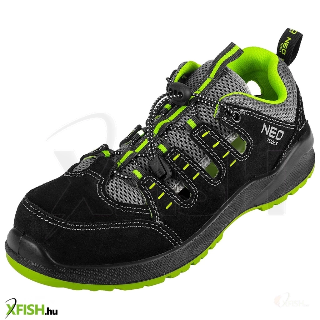 A NEO TOOLS S1P SR munkaszandál tökéletes választás azok számára, akik igényes munkakörnyezetben dolgoznak, ahol a láb védelme elengedhetetlen. Ezek a kiváló minőségű lábbelik velúrbőrből és textilanyagból készülnek, ami nemcsak tartósságot, hanem kényelmet is biztosít a viselőjük számára. Az egyedülálló kötött "hálós" bélés és a légáteresztő felsőrész hatékony szellőzést nyújt, így hosszabb ideig kényelmesen viselhetők ezek a szandálok.