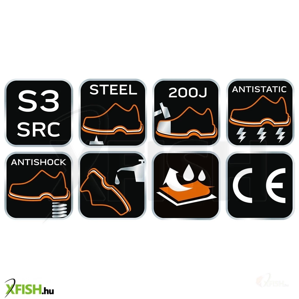Az S3 SRC minősítésű Neotools bakancs strapabíró felsőrésze vízlepergető, így ideális választás bármilyen időjárási körülmények között. A beépített acélbetét hatékonyan védi a lábfejet a leeső tárgyaktól, míg az acél átszúrásgátló betét a talpon keresztül történő sérülések ellen nyújt védelmet, ami különösen fontos lehet a hegyes kövekkel, vagy éles eszközökkel tarkított partszakaszokon.