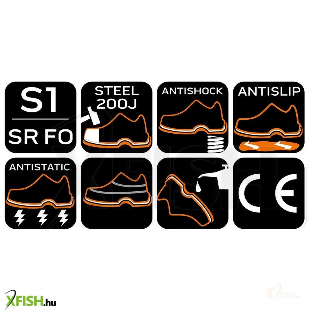 A cipő S1 minősítésének köszönhetően antisztatikus tulajdonságokkal rendelkezik, valamint energiaelnyelő sarokkal van ellátva, amely csökkenti a folyamatos terhelés okozta stresszt. A FO jelzés jelöli az olajálló talpat, így a cipő különösen jól teljesít olajjal szennyezett munkaterületeken, miközben megőrzi csúszásgátló tulajdonságait.