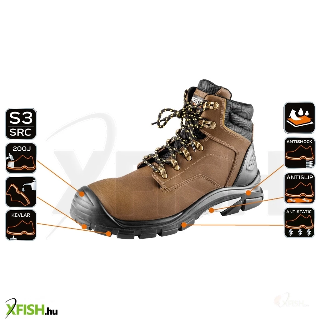 A Neotools munkavédelmi bakancs S3 SRC kiváló választás a horgászok számára, akiknek a biztonság és a kényelem egyaránt fontos. Ez a modell a legmagasabb szintű védelmet nyújtja az S3 besorolásnak köszönhetően, amely azt jelenti, hogy a bakancs vízlepergető tulajdonságokkal rendelkezik, valamint zárt sarokkal és energiaelnyelő talppal van ellátva. Ez különösen hasznos lehet, ha nedves környezetben horgászik vagy sáros, csúszós terepen tartózkodik.