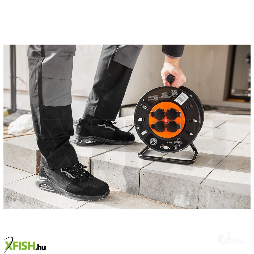 A biztonsági cipő fényvisszaverő elemekkel van felszerelve, amelyek javítják a láthatóságot gyenge fényviszonyok mellett vagy éjszakai munkavégzés során, ezáltal növelve a munkavállalók biztonságát. A modern kialakítás és az esztétikus megjelenés révén a Neotools cipő nemcsak védelmet, hanem stílust is kínál a viselője számára.
