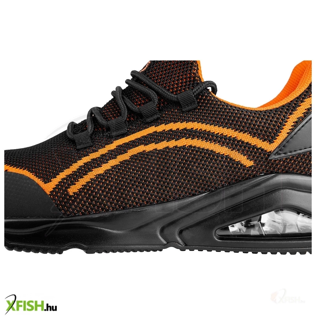 Neotools munkavédelmi cipő, s1 sr, fekete-narancs, neo air, acélbetéttel, légpárnás talppal, fényvisszaverő elemekkel, 45