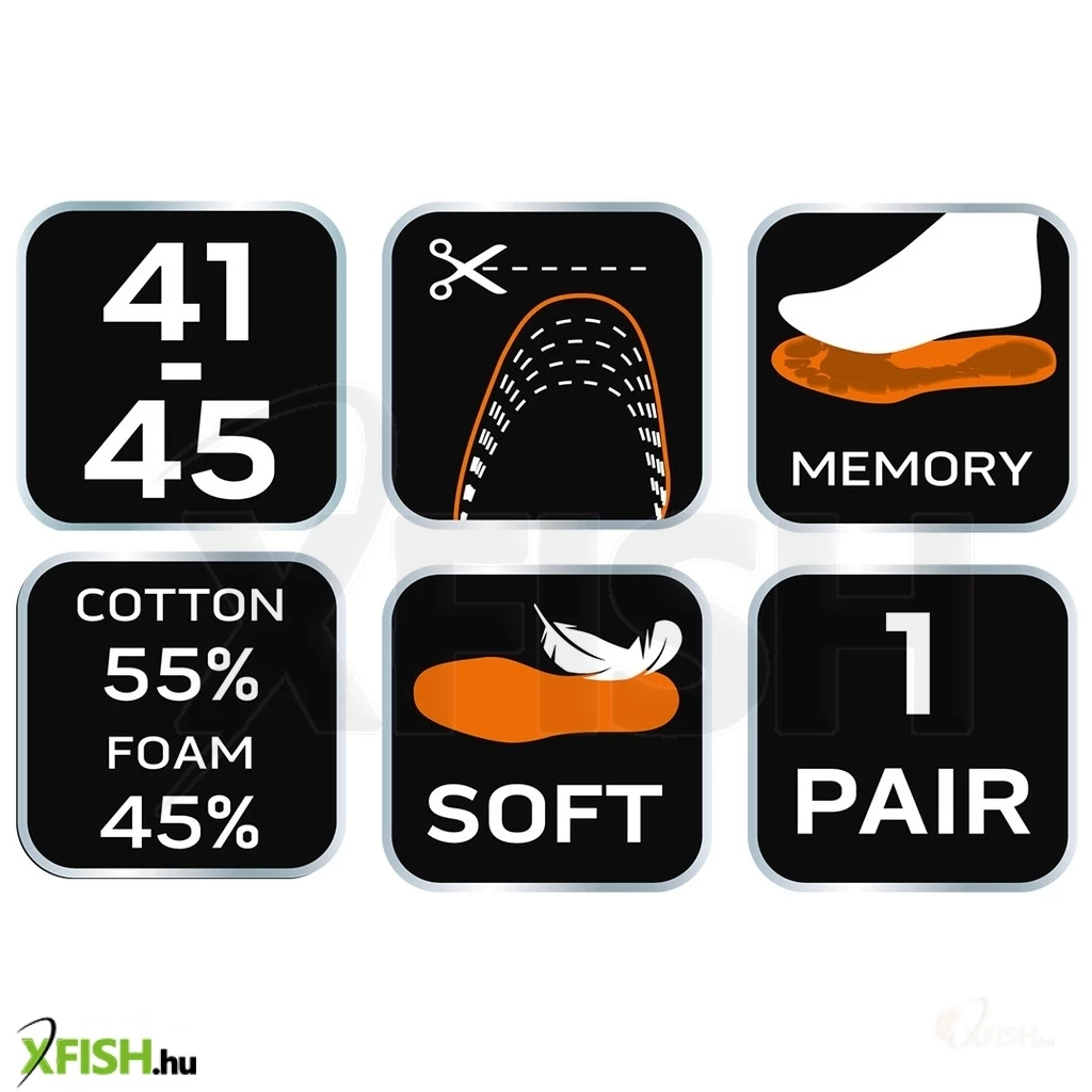 Az innovatív memóriahab technológiával készült betét alkalmazkodik a lábfej formájához, ezzel javítva a testtartást és segítve a súly egyenletes eloszlását. Ez a tulajdonság különösen hasznos azoknak a horgászoknak, akik egyensúlyban kell, hogy maradjanak a csónakban vagy a parton.