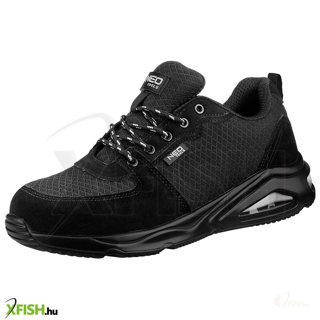 Neotools munkavédelmi cipő, o1 sr, fekete textil-bőr, neo air, légpárnás, fémmentes, csúszásgátlós talpfelülettel, 39