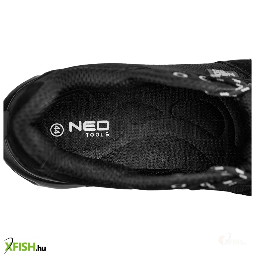 Neotools munkavédelmi cipő, o1 sr, fekete textil-bőr, neo air, légpárnás, fémmentes, csúszásgátlós talpfelülettel, 42