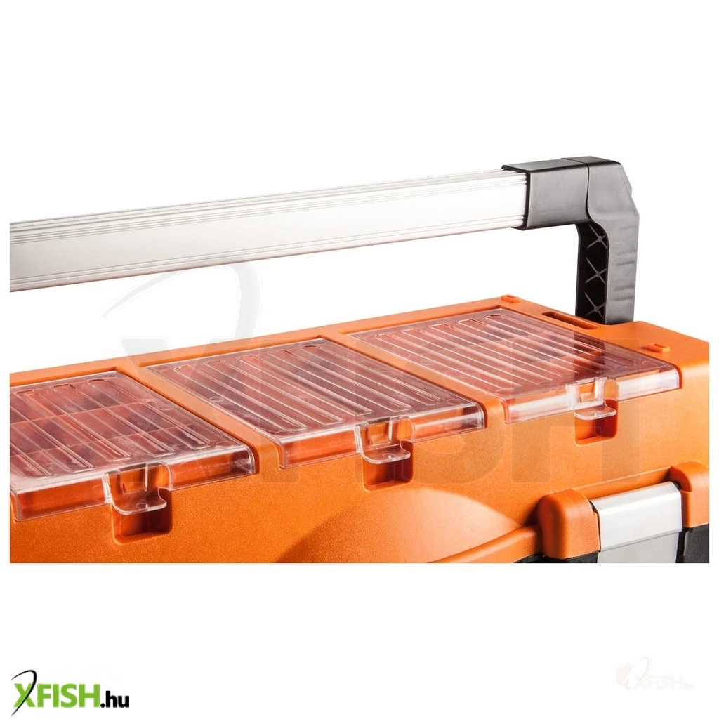 Az alumínium hordfogantyú és csatok garantálják a tartósságot és a könnyed hordozhatóságot; a szerszámosláda tehát a legnehezebb körülmények között is állja a sarat. A két külön rendeződoboz és a polikarbonát fedél megkönnyíti a szerszámok rendszerezését, így mindig pontosan tudni fogja, hol találja meg a szükséges eszközt. A szétnyitható tálca használat közben további tárolási lehetőségeket nyújt, miközben a hely biztosított a lakatnak is, így a biztonság mindig szem előtt van.