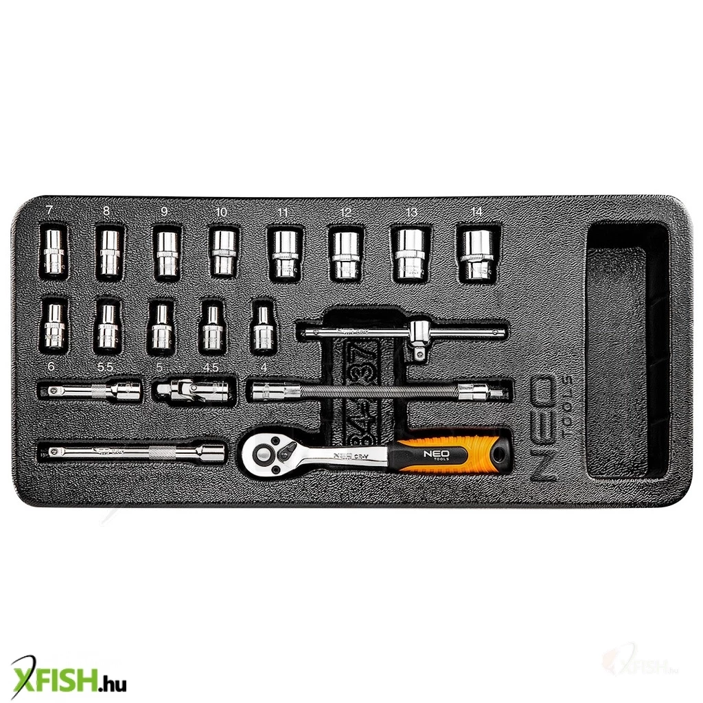 Neotools dugókulcskészlet 1/4, 19db, 4-14mm, műhelykocsitálcával