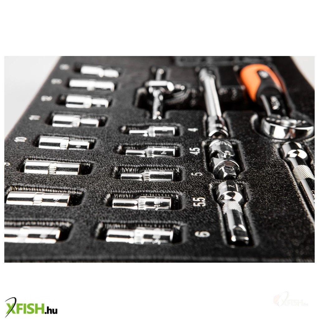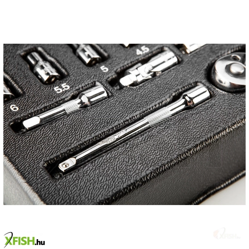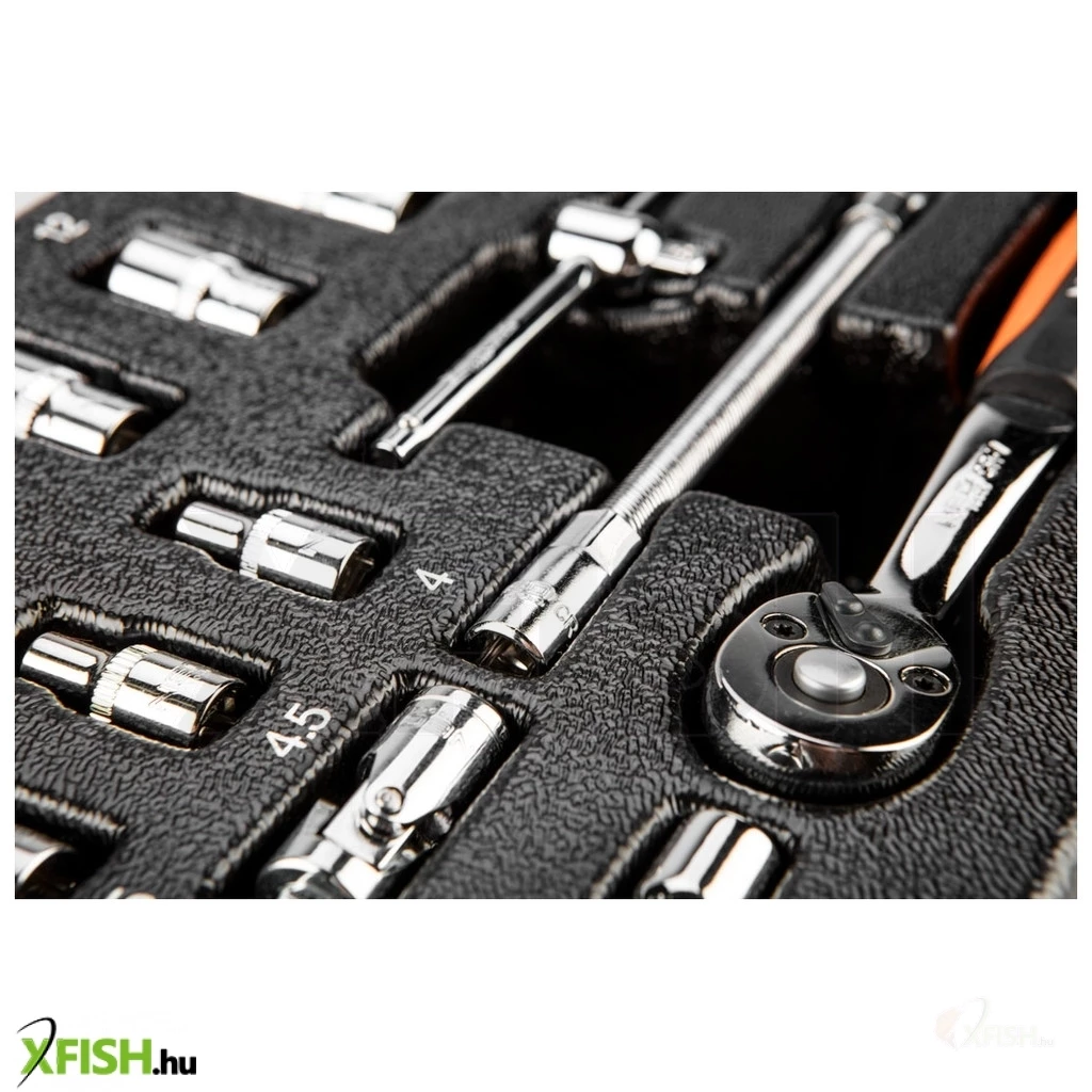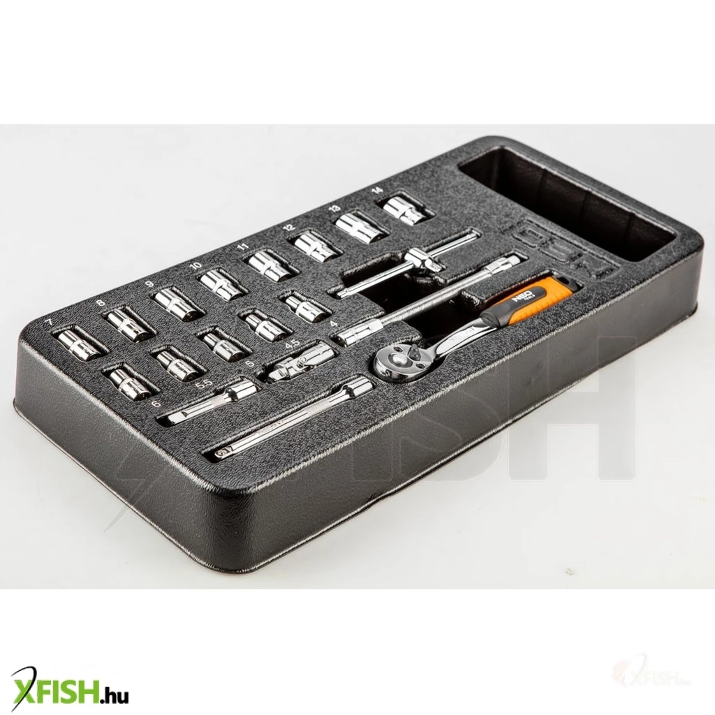 A Neotools dugókulcskészlet azért van, hogy a horgászszerszámok minőségi tárolása és karbantartása soha ne legyen probléma. Ez a 19 darabos készlet, amely 1/4''-es dugókulcsokat tartalmaz, ideális kiegészítő bármely műhelyhez vagy szerszámkészlethez. A készlet alapját a CrV acélból készült dugókulcsok képezik, amelyek tartósságukról és megbízhatóságukról híresek. A készlet 13 különböző méretű dugókulccsal érkezik: 4, 4.5, 5, 5.5, 6, 7, 8, 9, 10, 11, 12, 13 és 14 mm-es méretek, biztosítva, hogy minden csavarhoz könnyedén hozzáférjen.