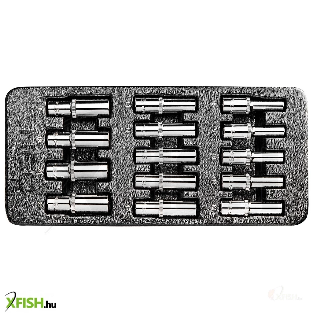 A készletben található méretek a következők: 8 mm, 9 mm, 10 mm, 11 mm, 12 mm, 13 mm, 14 mm, 15 mm, 16 mm, 17 mm, 18 mm, 19 mm, 20 mm, 21 mm.