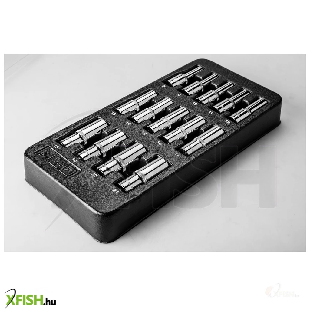 Neotools dugókulcskészlet hosszú 1/2” 14db, 8-21mm, műhelykocsitálcával
