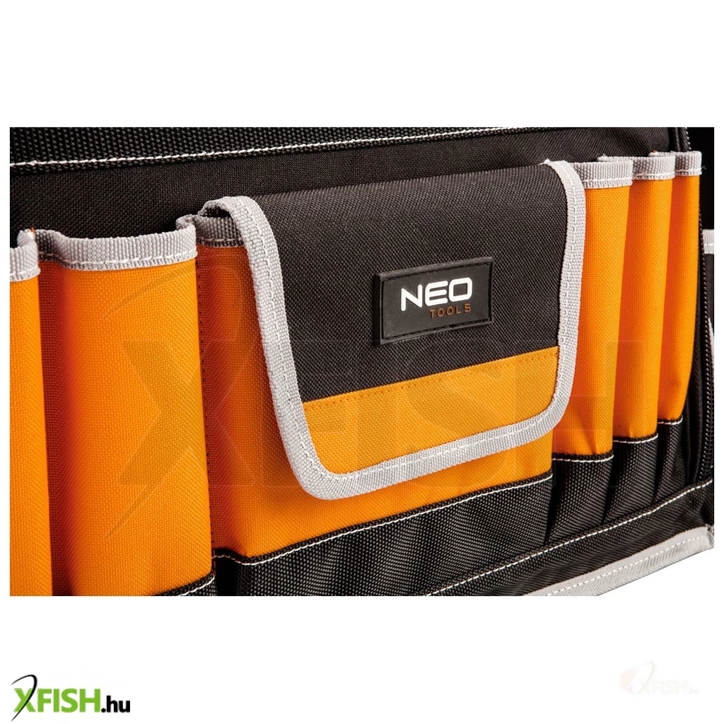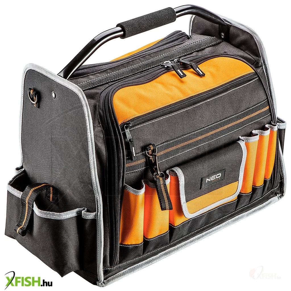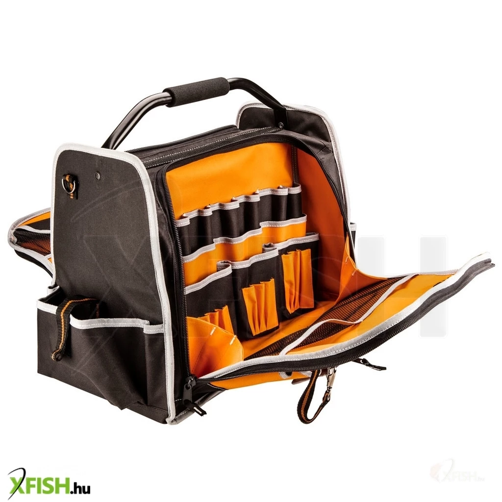 Neotools szerszámtáska csőalakú fém fogantyúval, kívül12 zseb, belül32 zseb