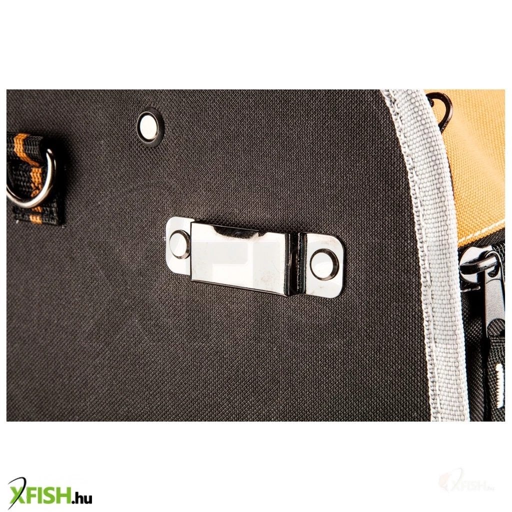 A merevített felépítés nemcsak a szerszámok biztonságos tárolásáról gondoskodik, de a tartalom védelmét is biztosítja a külső sérülésekkel szemben. A táska külön mérőszalag tartóval és két fő kamrával rendelkezik, ahol a nagyobb eszközök is kényelmesen elférnek. A beépített cimketartó lehetővé teszi a tulajdonos vagy tartalom könnyű azonosítását. A megerősített cipzárak gondoskodnak arról, hogy a szerszámok mindig védve legyenek és könnyen hozzáférhetők maradjanak.