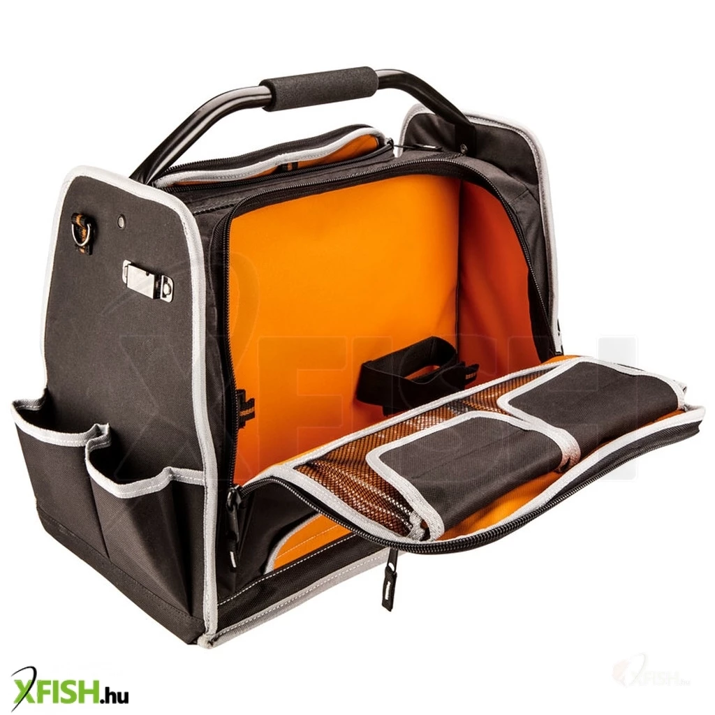 A Neotools szerszámtáska tökéletes választás mindenkinek, aki a szerszámok tárolásában nem köt kompromisszumot. A szerszámtáska 600D poliamid szövetből készült, amely kivételes tartósságot és időtállóságot biztosít, így hosszú éveken keresztül megbízható társ lehet a nehéz munkanapokon. A táska profilírozott csőalakú fém fogantyúval rendelkezik, ami a könnyed és kényelmes szállítást garantálja, megkönnyítve a szerszámok egyszerű hordozását a munkahelyek között.