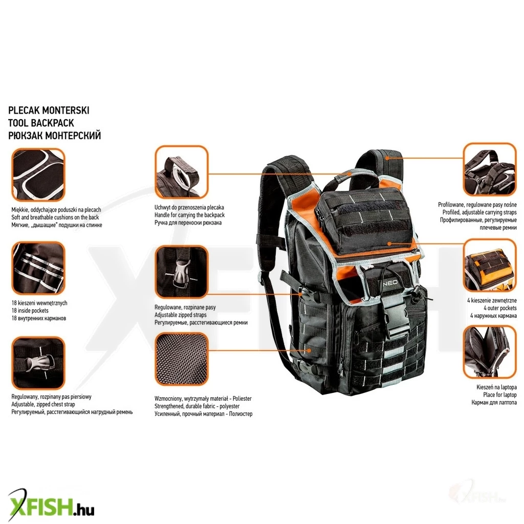 Neotools szerszámos hátizsák, kívül4 zseb, belül18 zseb