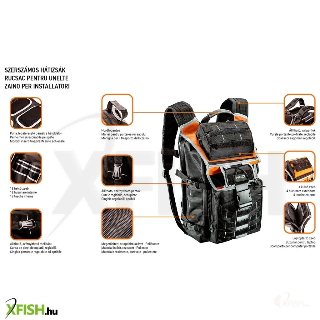 KategóriákKategóriákKerti szerszámok, eszközök Szerszámtárolás Neotools szerszámos hátizsák, kívül4 zseb, belül18 zseb