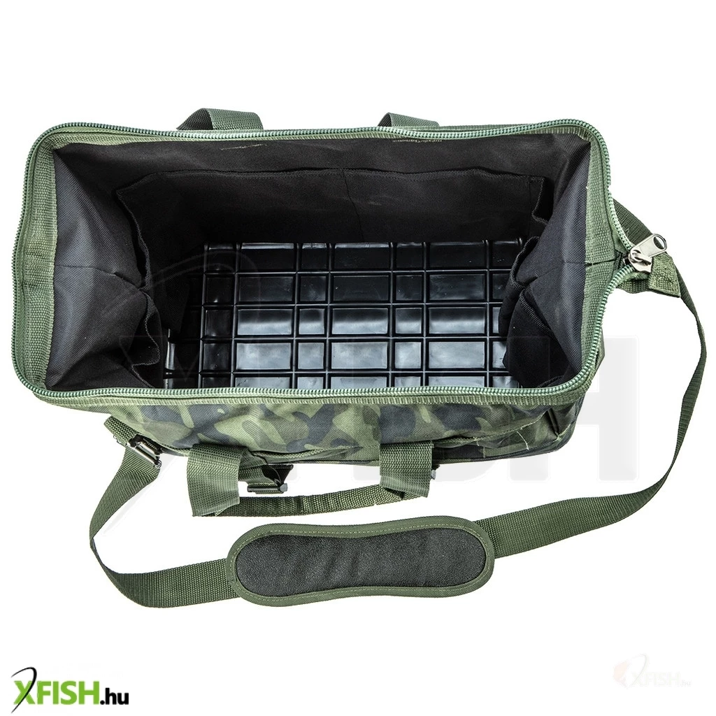 A táska terepmintás kialakítása nemcsak esztétikailag vonzó, hanem a természetben való használatra, például nagyobb kihívásokkal járó kalandokhoz, horgásztúrákhoz is ideális. Az erős merevített és vízálló fenék megvédi a táska tartalmát a nedvességtől és a sérülésektől, bármilyen környezetben is dolgozik vele. A 14 külső és 8 belső zseb okos elrendezése lehetővé teszi a szerszámok és szerelvények biztonságos és egyszerű elrendezését, így mindig gyorsan hozzáférhet a szükséges eszközökhöz.