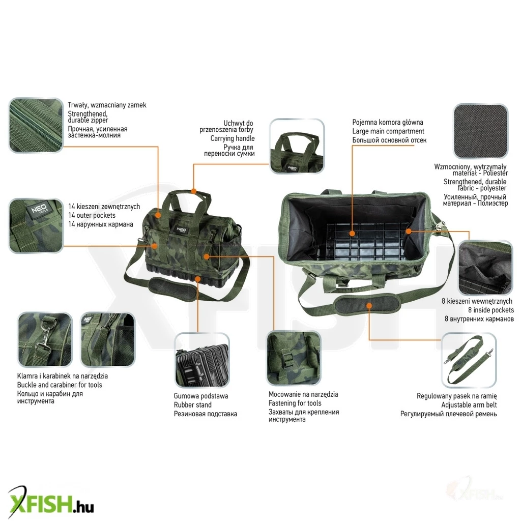 KategóriákKategóriákKerti szerszámok, eszközök Szerszámtárolás Neotools szerszámtáska terepmintás, 40x22x33cm, 600d poliészter